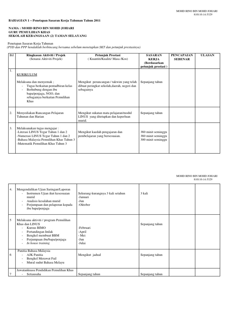 Peralatan i Penetapan Sasaran Kerja dan 3 Petunjuk Prestasi Pegawai Yang Dinilai Pegawai Penilai - Penentuan Sasaran Kerja Januari Menetapkan Sasaran Kerja Pertama dan Tahunan dan pengisian Tahunan termasuk jenis Pegawai Penilai Borang Sasaran Kerja projek aktiviti dan Kedua Tahunan jangkamasa siap serta petunjuk prestasi mengikut. Contoh BORANG SKT guru 2010. -- Sasaran Kerja Tahunan By Cg Wann Issuu Attribution non commercial by nc available formats.